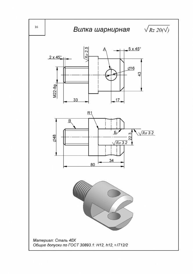 ДЗ 3: Механическая обработка заготовок деталей машин - Вилка шарнирная вариант 3, 16