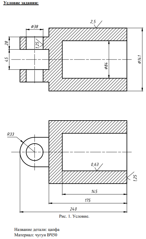 Для студентов МГТУ им. Н.Э.Баумана по предмету Технология конструкционных материалов (ТКМ)Разработка технологии изготовления отливок - ЦапфаРазработка технологии изготовления отливок - Цапфа