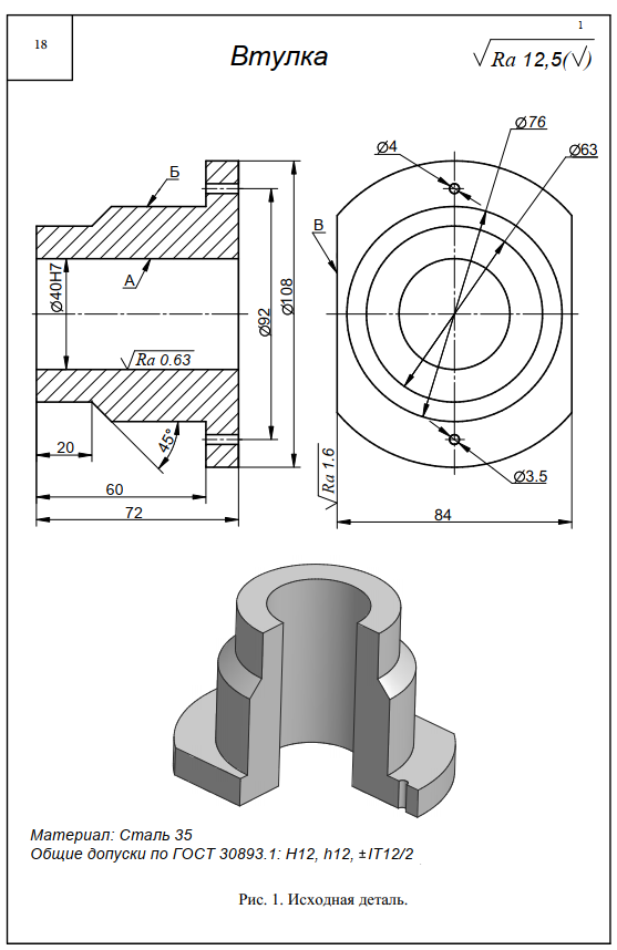 ДЗ 3: Механическая обработка заготовок деталей машин - Втулка вариант 1, 18