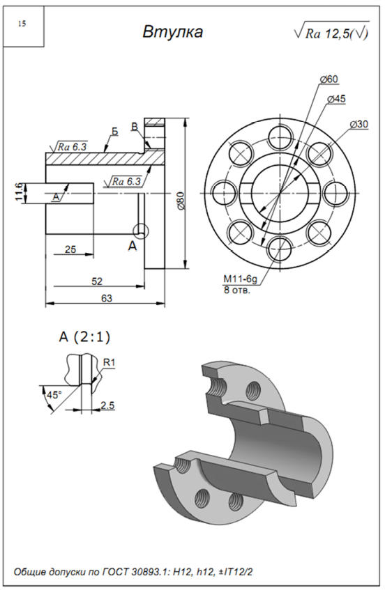 ДЗ 3: Механическая обработка заготовок деталей машин - Втулка вариант 15, 17