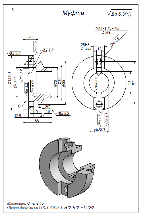 ДЗ 3: Механическая обработка заготовок деталей машин - Муфта вариант 31