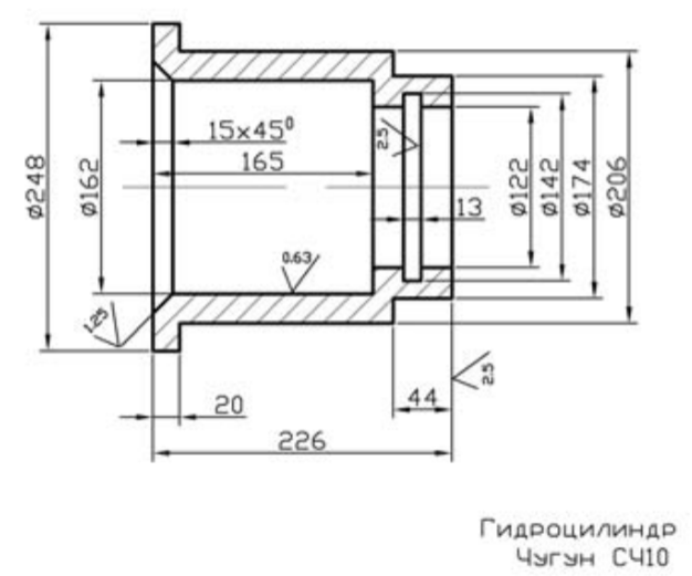 Для студентов МГТУ им. Н.Э.Баумана по предмету Технология конструкционных материалов (ТКМ)Механическая обработка заготовок деталей машин - ГидроцилиндрМеханическая обработка заготовок деталей машин - Гидроцилиндр