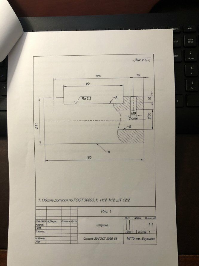 Для студентов МГТУ им. Н.Э.Баумана по предмету Технология конструкционных материалов (ТКМ)Механическая обработка заготовок деталей машин - ВтулкаМеханическая обработка заготовок деталей машин - Втулка