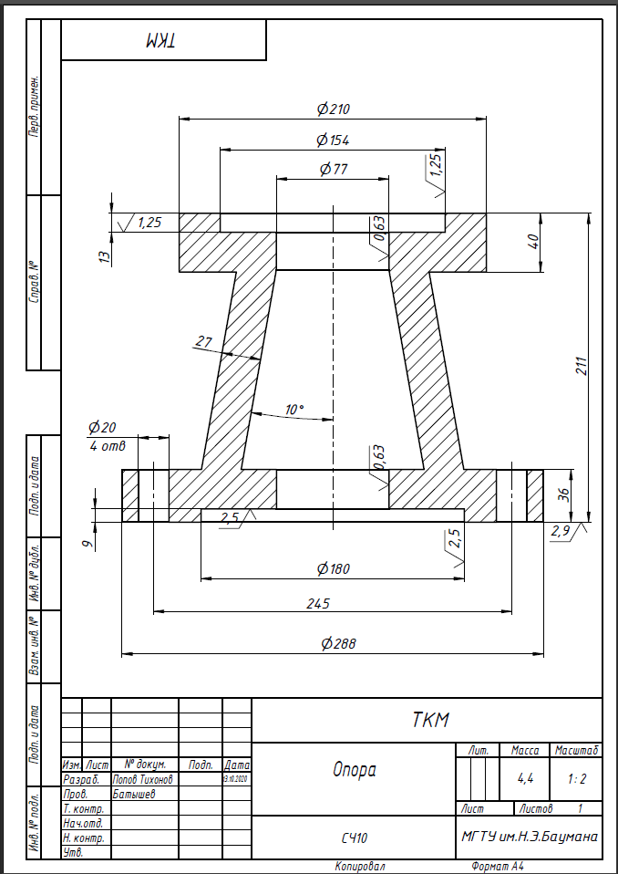Для студентов МГТУ им. Н.Э.Баумана по предмету Технология конструкционных материалов (ТКМ)Разработка технологии изготовления отливок - ОпораРазработка технологии изготовления отливок - Опора