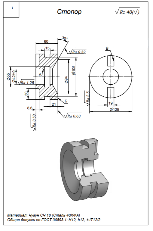 Для студентов МГТУ им. Н.Э.Баумана по предмету Технология конструкционных материалов (ТКМ)Механическая обработка заготовок деталей машин - СтопорМеханическая обработка заготовок деталей машин - Стопор