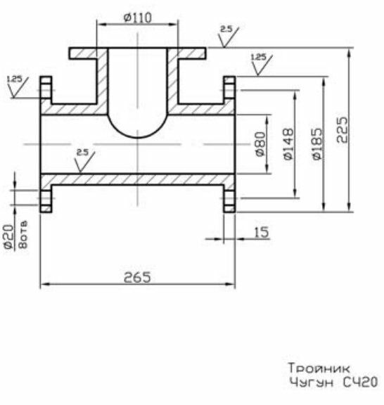 Для студентов МГТУ им. Н.Э.Баумана по предмету Технология конструкционных материалов (ТКМ)Разработка технологии изготовления отливок - ТройникРазработка технологии изготовления отливок - Тройник
