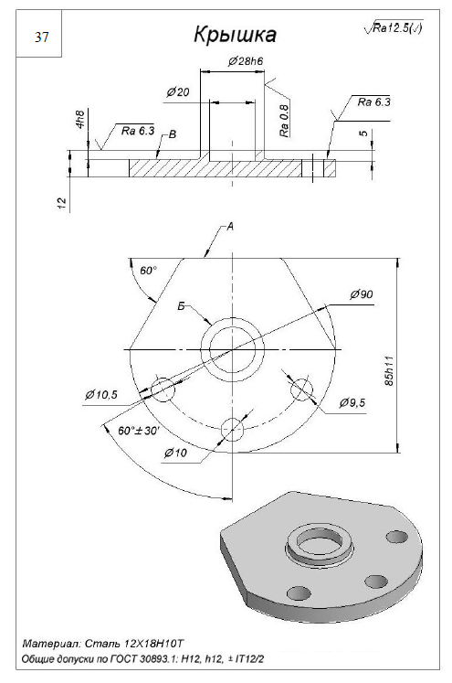 ДЗ 3: Механическая обработка заготовок деталей машин - Крышка вариант 37