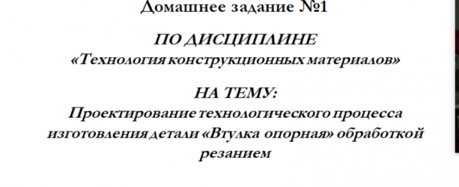 Для студентов МГТУ им. Н.Э.Баумана по предмету Технология конструкционных материалов (ТКМ)Механическая обработка заготовок деталей машин - Втулка опорнаяМеханическая обработка заготовок деталей машин - Втулка опорная