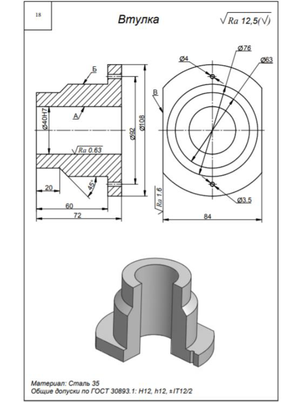 ДЗ 3: Механическая обработка заготовок деталей машин - Втулка вариант 1, 18