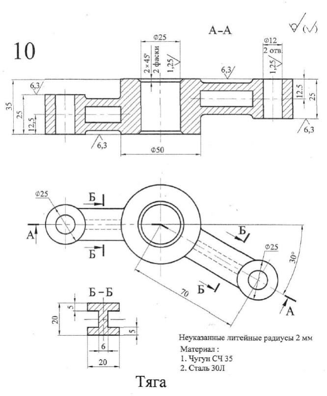 ДЗ 1: Разработка технологии изготовления отливок - Тяга вариант 10