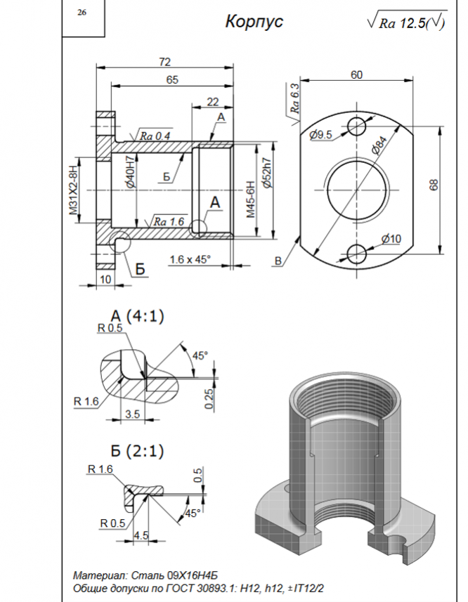 ДЗ 3: Механическая обработка заготовок деталей машин - Корпус вариант 24, 26