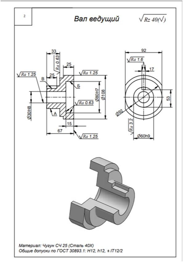 ДЗ 3: Механическая обработка заготовок деталей машин - Вал ведущий вариант 2