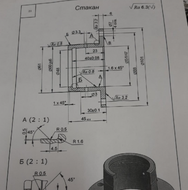 ДЗ 3: Механическая обработка заготовок деталей машин - Стакан вариант 8, 21