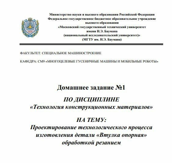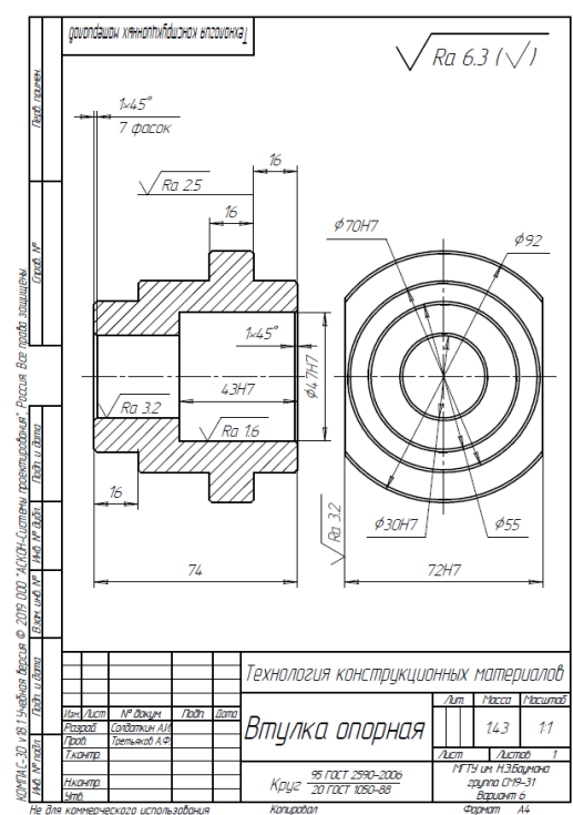 Для студентов МГТУ им. Н.Э.Баумана по предмету Технология конструкционных материалов (ТКМ)Механическая обработка заготовок деталей машин - Втулка опорнаяМеханическая обработка заготовок деталей машин - Втулка опорная