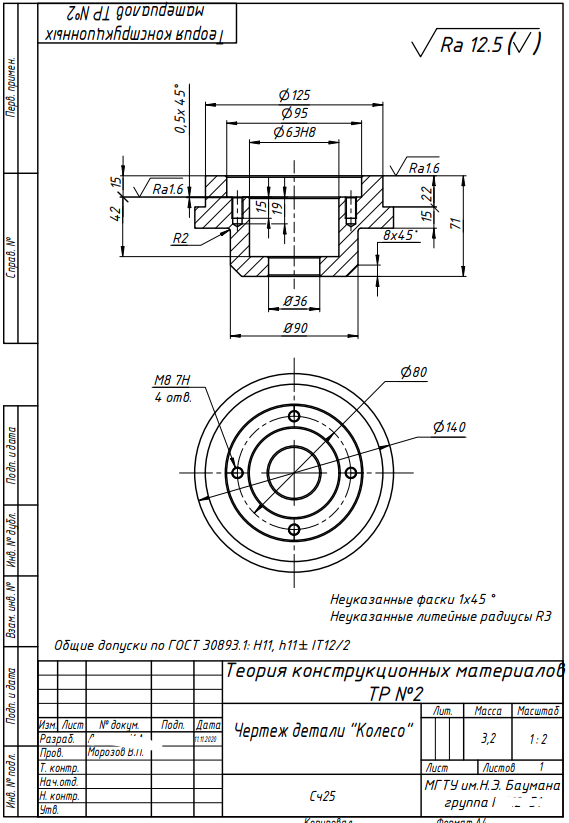 Для студентов МГТУ им. Н.Э.Баумана по предмету Технология конструкционных материалов (ТКМ)Технология изготовления поковок - КолесоТехнология изготовления поковок - Колесо