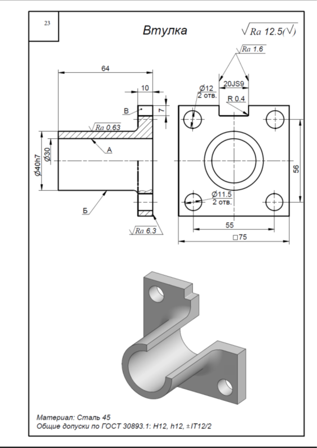 ДЗ 3: Механическая обработка заготовок деталей машин - Втулка вариант 9, 23