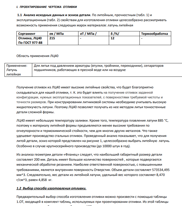 По литейным, прочностным (табл. 1) и эксплуатационным (табл. 2) свойствам для изготовления отливки целесообразно рассматривать возможность применения следующих марок материалов: латунь литейная
