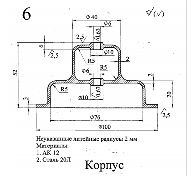 ДЗ 1: Разработка технологии изготовления отливок - Корпус вариант 6