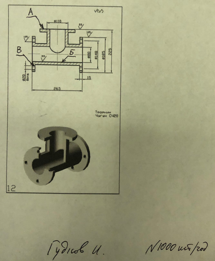 ДЗ 1: Разработка технологии изготовления отливок - Тройник вариант 12, 19