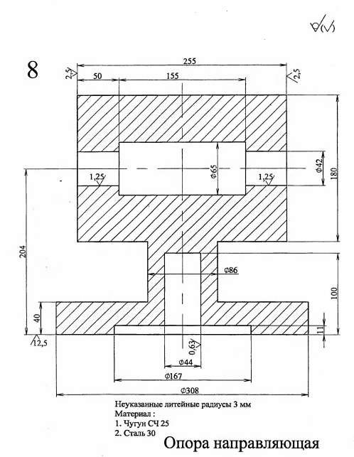 ДЗ 1: Разработка технологии изготовления отливок - Опора направляющая вариант 8