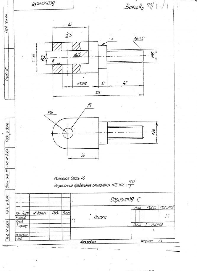 ДЗ 3: Механическая обработка заготовок деталей машин - Вилка вариант 18
