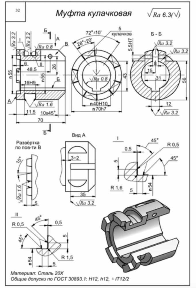 ДЗ 3: Механическая обработка заготовок деталей машин - Муфта кулачковая вариант 32