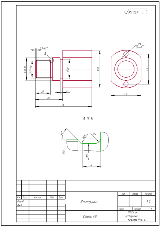 ДЗ 3: Механическая обработка заготовок деталей машин - Заглушка вариант 44