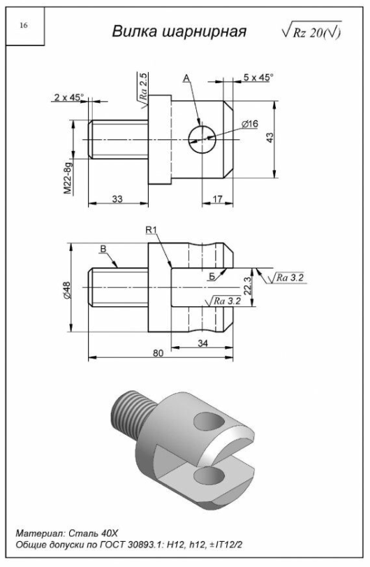 ДЗ 3: Механическая обработка заготовок деталей машин - Вилка шарнирная вариант 3, 16