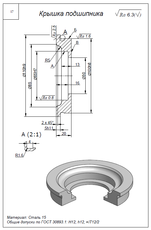 ДЗ 1: Разработка технологии изготовления отливок - Крышка подшипника вариант 17, 18