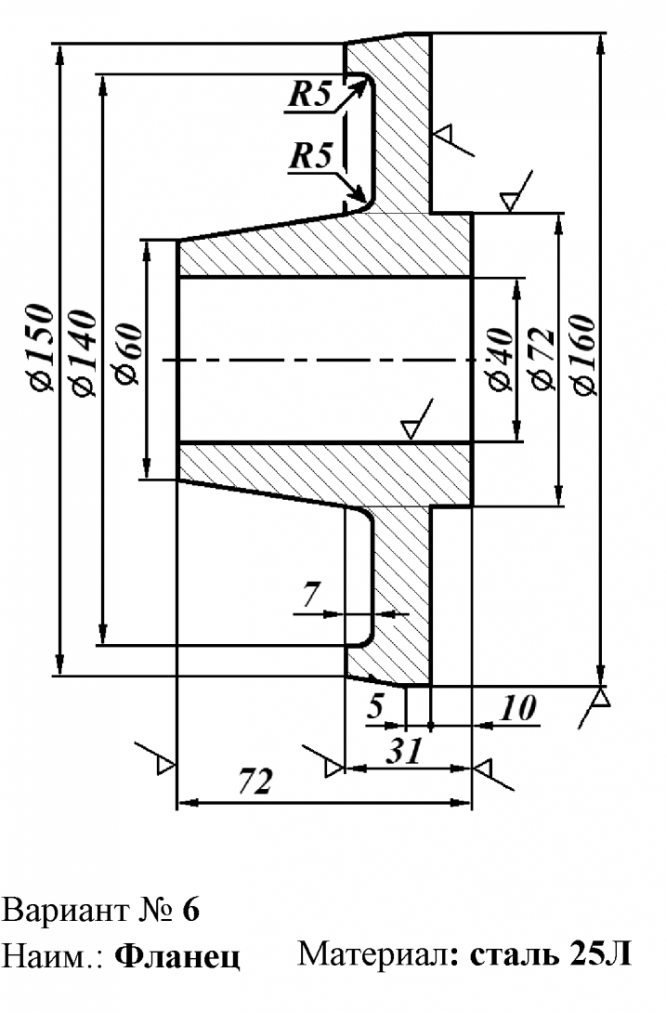 По чертежу детали разработать технологию изготовления отливки в песчано-глинистой форме. Варианты заданий выдает преподаватель.