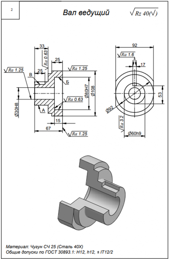 ДЗ 2: Механическая обработка заготовок деталей машин - Вал ведущий вариант 2