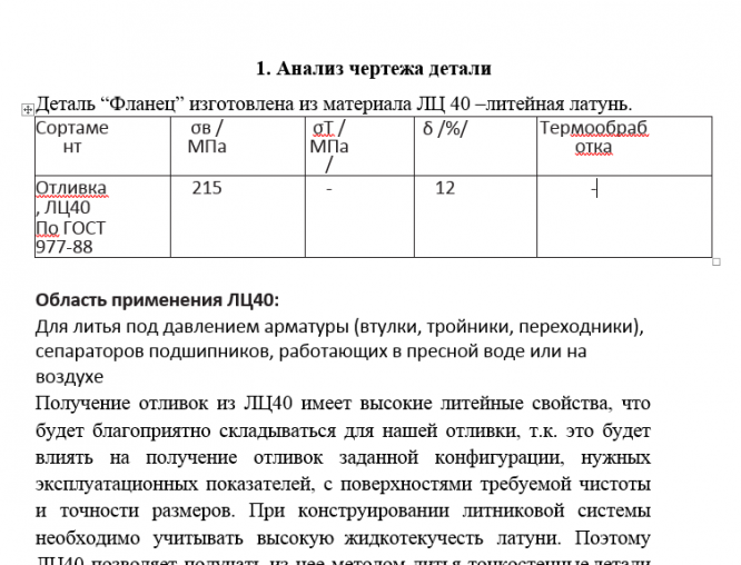 Получение отливок из ЛЦ40 имеет высокие литейные свойства, что будет благоприятно складываться для нашей отливки, т.к. это будет влиять на получение отливок заданной конфигурации, нужных эксплуатационных показателей, с поверхностями требуемой чистоты и точности размеров. При конструировании литниковой системы необходимо учитывать высокую жидкотекучесть латуни. Поэтому ЛЦ40 позволяет получать из нее методом литья тонкостенные детали сложной формы. ЛЦ40 имеет небольшую температуру заливки.