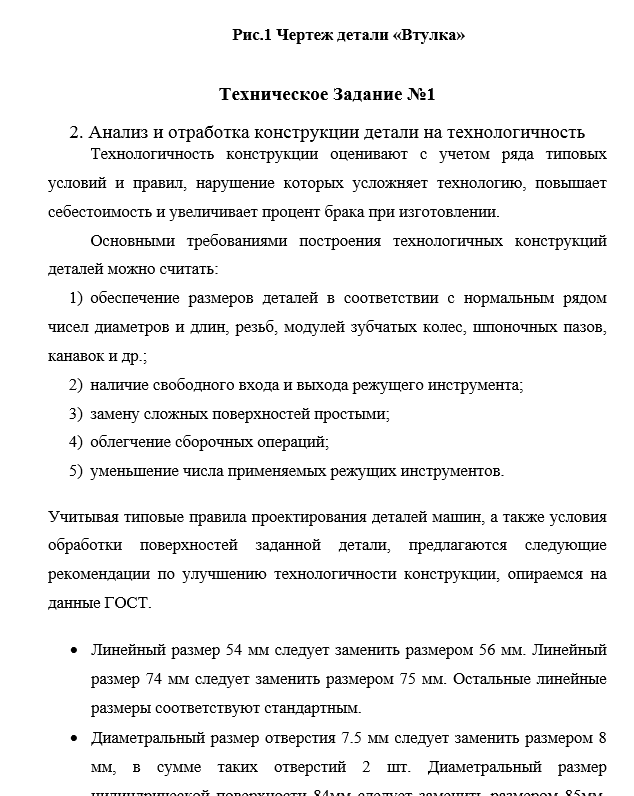 Техническое задание №1. По чертежу детали (рис. 1) оценить технологичность конструкции по рекомендованным конструктивным параметрам с учётом вида обработки поверхности. Дать свои предложения об изменении конструктивных параметров детали с целью улучшения технологичности конструкции. Начертить эскиз изменённой детали (рис. 2).
