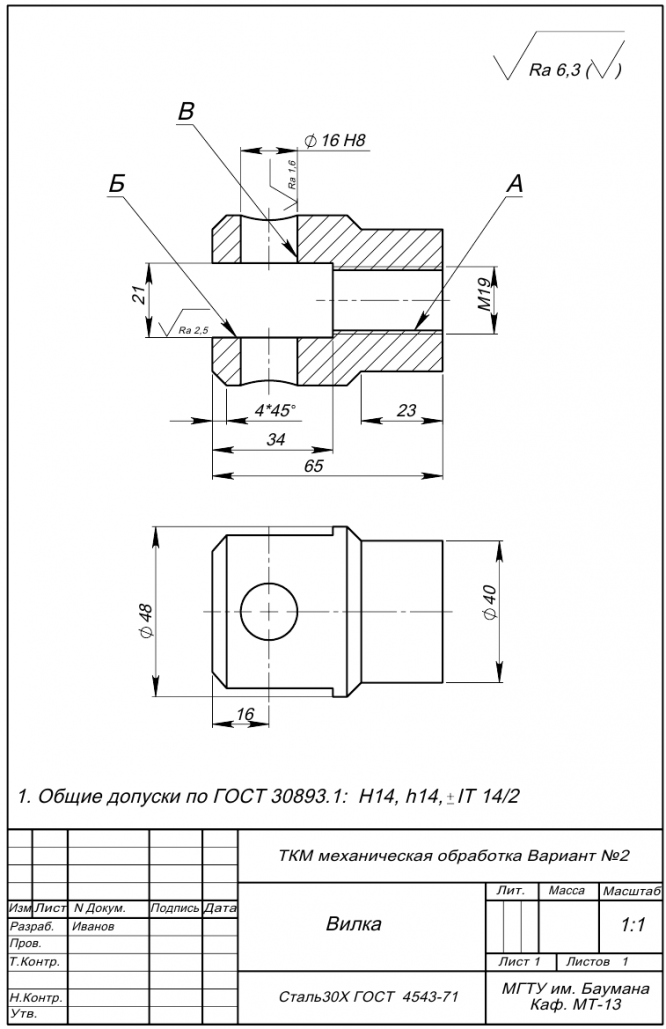 Для студентов МГТУ им. Н.Э.Баумана по предмету Технология конструкционных материалов (ТКМ)Механическая обработка деталей машин - ВилкаМеханическая обработка деталей машин - Вилка