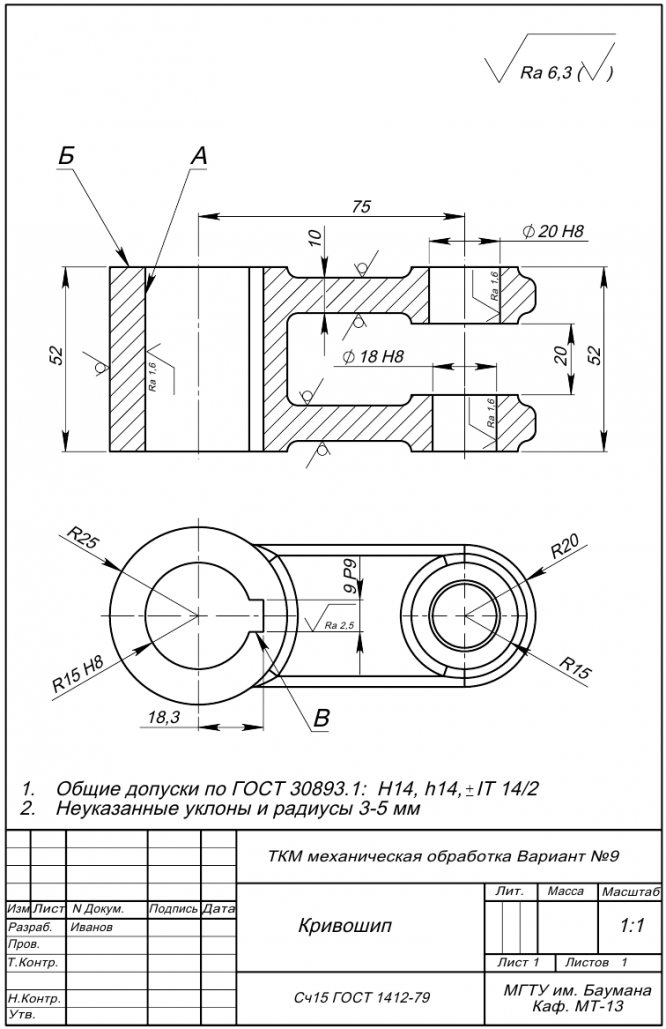 Для студентов МГТУ им. Н.Э.Баумана по предмету Технология конструкционных материалов (ТКМ)Механическая обработка деталей машин - КривошипМеханическая обработка деталей машин - Кривошип
