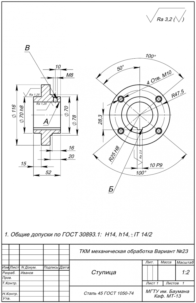 ДЗ 3: Механическая обработка деталей машин - Ступица вариант 23