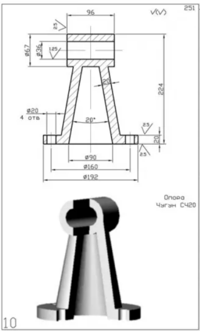 ДЗ 1: Разработка технологии изготовления отливок - Опора вариант 10