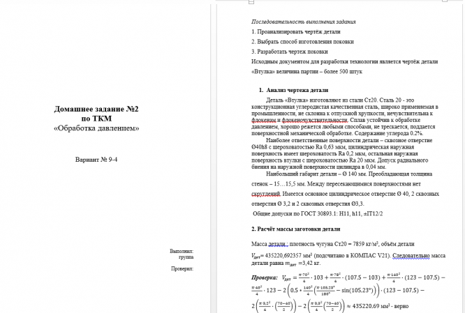 Для студентов МГТУ им. Н.Э.Баумана по предмету Технология конструкционных материалов (ТКМ)Обработка давлением. ВтулкаОбработка давлением. Втулка