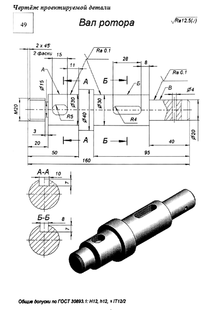 ДЗ 3: Механическая обработка заготовок деталей машин - Вал ротора вариант 49