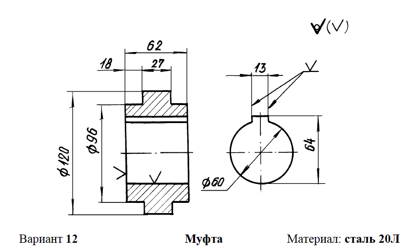 ДЗ 1: Разработка технологии получения отливок в песчано-глинистых формах - Муфта вариант 12