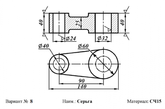 По чертежу детали разработать технологию изготовления отливки в песчано-глинистой форме. Варианты заданий выдает преподаватель.