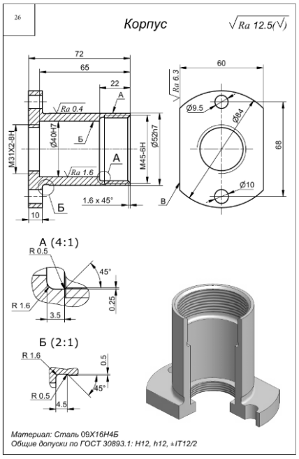 ДЗ 3: Механическая обработка заготовок деталей машин - Корпус вариант 24, 26
