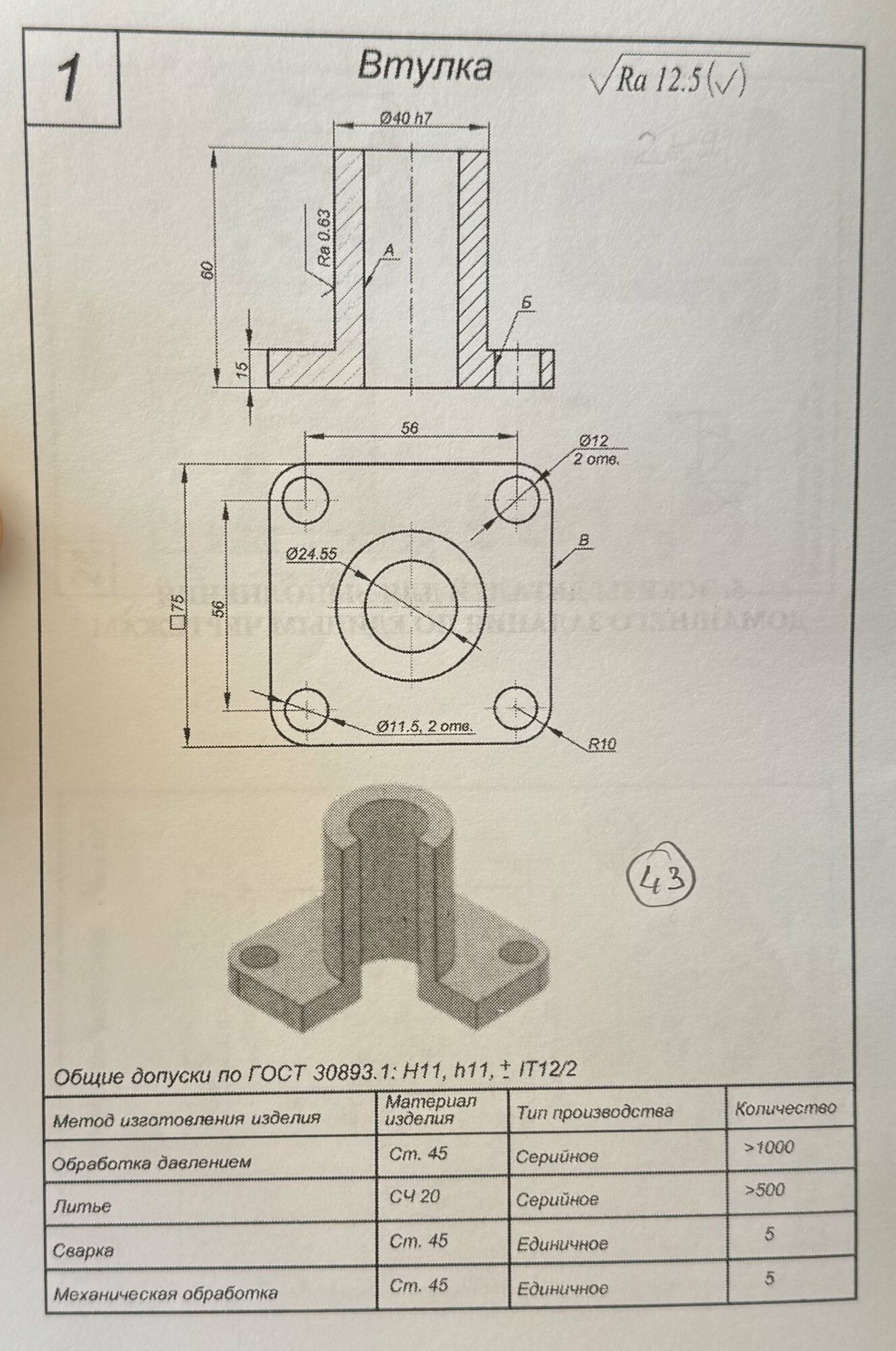 ДЗ 1: Разработка технологии изготовления отливок - Втулка вариант 1, 18, 43