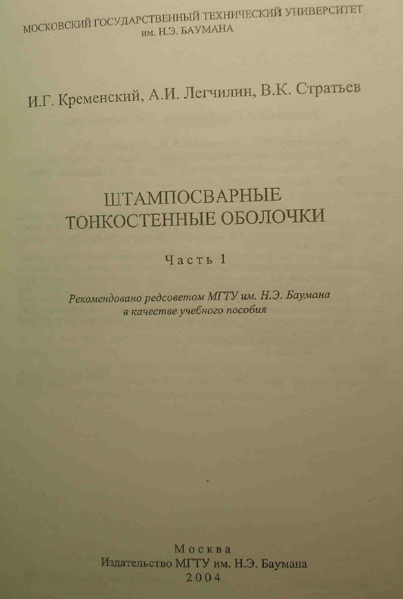 Для студентов МГТУ им. Н.Э.Баумана по предмету Технология конструкционных материалов (ТКМ)И.Г. Кременский, А.И. Легчилин, В.К. Стратьев - Штампосварные тонкостенные оболочкиИ.Г. Кременский, А.И. Легчилин, В.К. Стратьев - Штампосварные тонкостенные оболочки