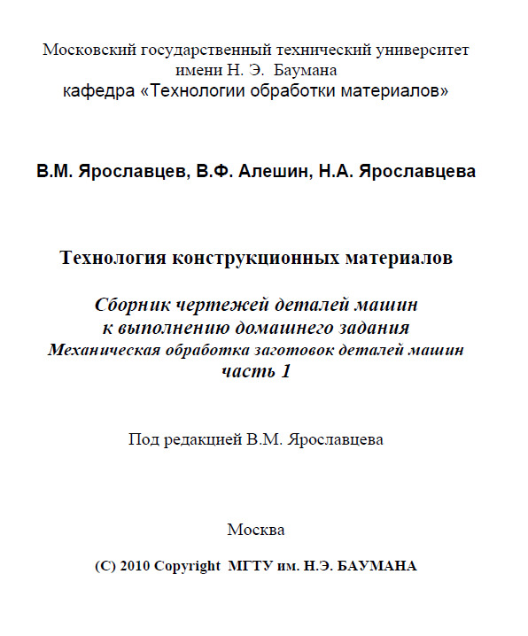 Для студентов МГТУ им. Н.Э.Баумана по предмету Технология конструкционных материалов (ТКМ)В.М. Ярославцев, В.Ф. Алешин, Н.А. Ярославцева - Сборник чертежей деталей машин к выполнению домашнего задания. Механическая обработка заготовок деталВ.М. Ярославцев, В.Ф. Алешин, Н.А. Ярославцева - Сборник чертежей деталей машин к выполнению домашнего задания. Механическая обработка заготовок детал 2023-07-17СтудИзба