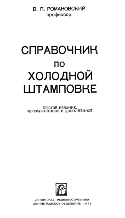 Для студентов МГТУ им. Н.Э.Баумана по предмету Технология листовой штамповки (ТЛШ) (МТ-6)Романовский В.П. - Справочник по холодной штамповкеРомановский В.П. - Справочник по холодной штамповке