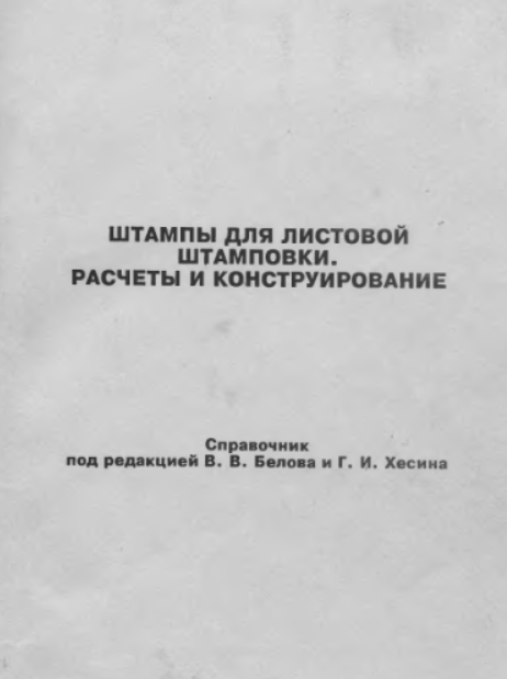 Книга: Белова В.В. - Штампы для листовой штамповки Расчеты и конструирование