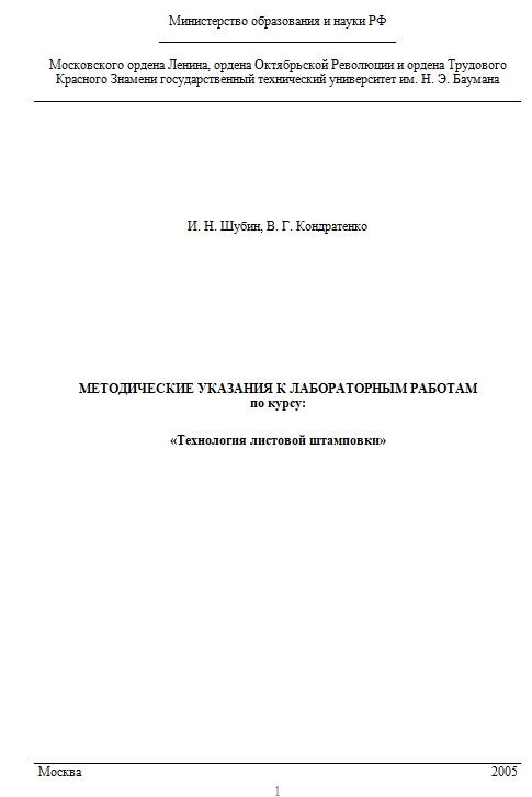 Для студентов МГТУ им. Н.Э.Баумана по предмету Технология листовой штамповки (ТЛШ) (МТ-6)И. Н. Шубин, В. Г. Кондратенко - Методические указания к лабораторным работам по курсу "Технология листовой штамповки"И. Н. Шубин, В. Г. Кондратенко - Методические указания к лабораторным работам по курсу "Технология листовой штамповки"