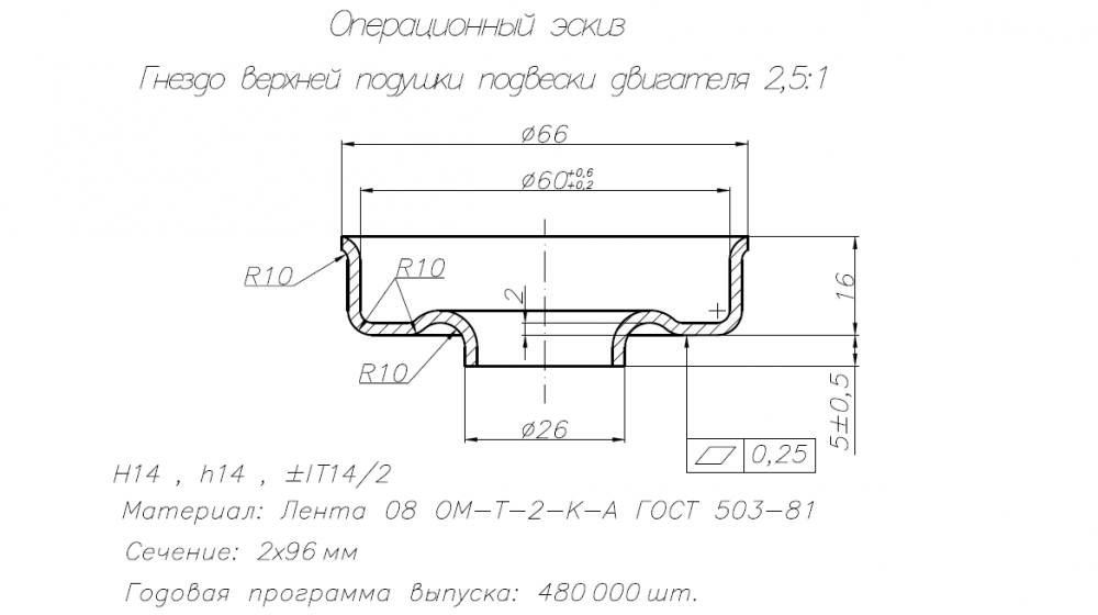 Для студентов МГТУ им. Н.Э.Баумана по предмету Технология листовой штамповки (ТЛШ) (МТ-6)Гнездо верхней подушки подвески двигателяГнездо верхней подушки подвески двигателя