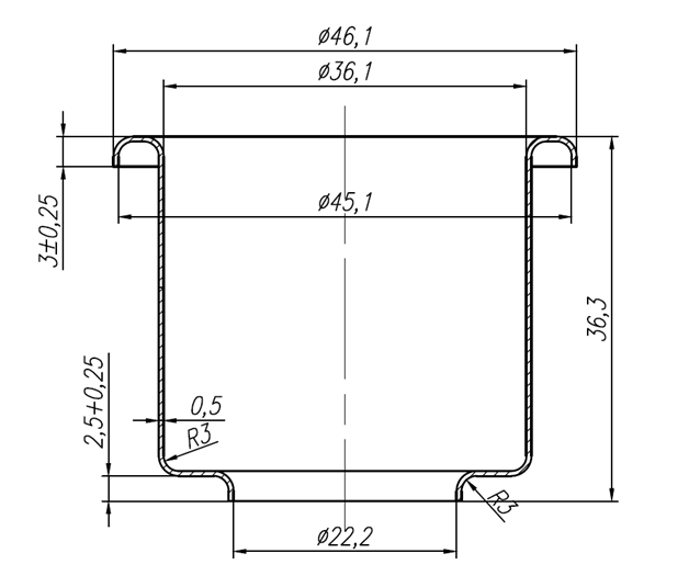 Разработать рациональный технологический процесс листовой штамповки детали “Кожух”. Исследовать, как влияет совместное изменение Δr и m на Δ на примере вытяжки цилиндрического стаканчика без фланца. Разработать технологическую оснастку и инструмент. Выбрать технологическое оборудование.Тип производства – массовое.
